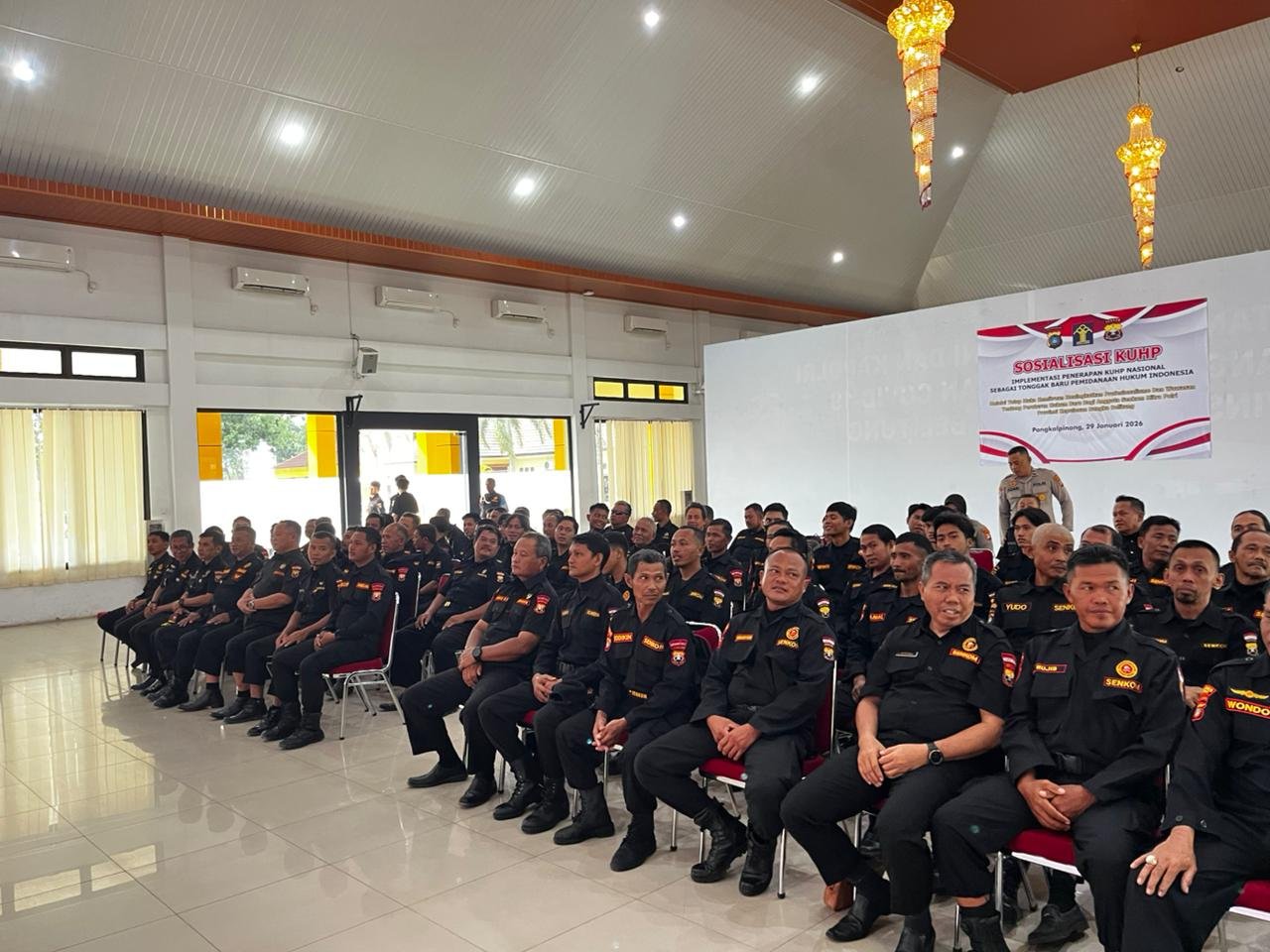 Buluh-Perindu.com – Pangkalpinang, 29 Januari 2026 – Bertempat di Gedung Tri Brata Polda Kepulauan Bangka Belitung, Kantor Wilayah Kementerian Hukum Kepulauan Bangka Belitung mengisi materi KUHP Nasional dalam kegiatan sosialisasi yang mengambil tema Implementasi KUHP Nasional Sebagai Tonggak Baru Pemidanaan Hukum Indonesia.
